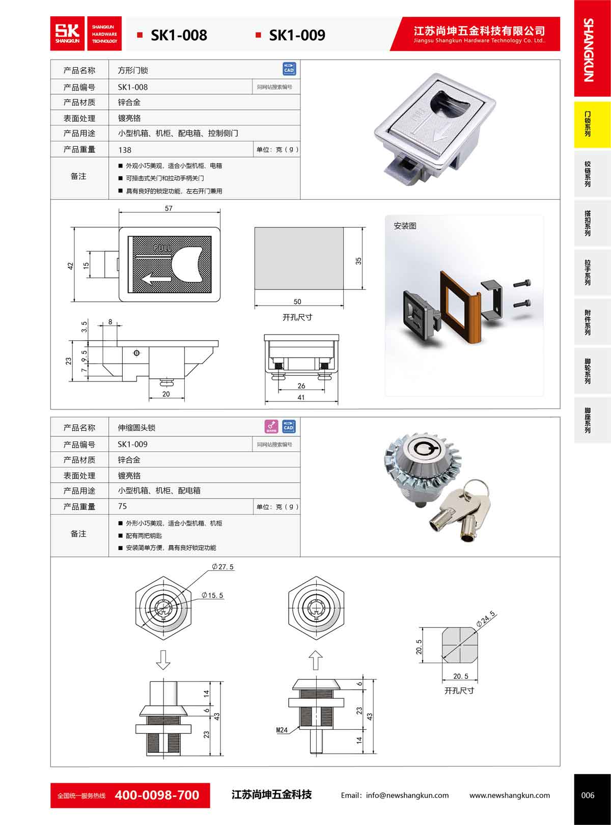 產品名稱:尚坤SK1-009鋅合金控制側門按壓式伸縮門鎖 圓頭鎖 圓柱鎖