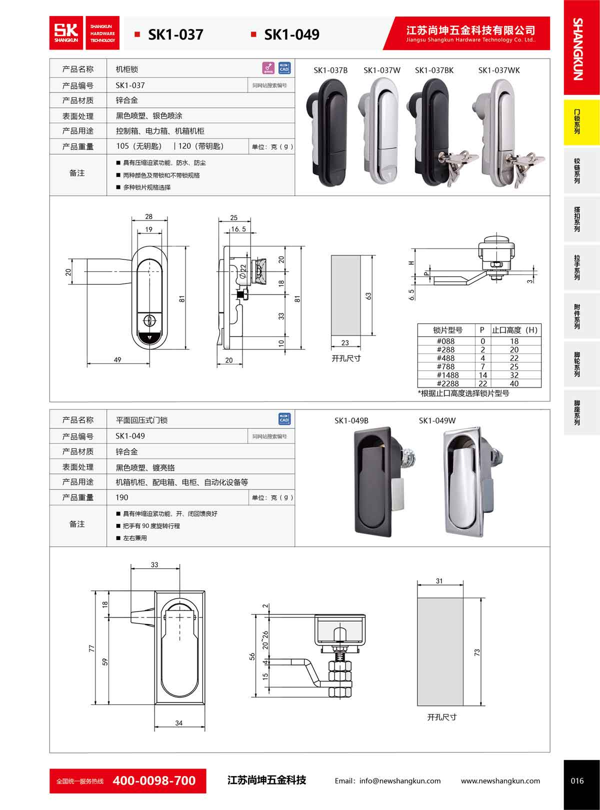 產品名稱:尚坤SK1-037B平面鎖 控制箱鎖 機柜門鎖 按壓式旋轉鎖
