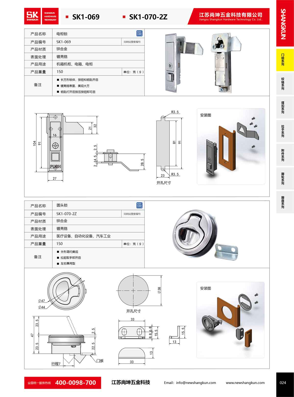 產品名稱:尚坤工業SK1-070-2Z鋅合金嵌入式隱形拉環取手 扣手 圓頭鎖