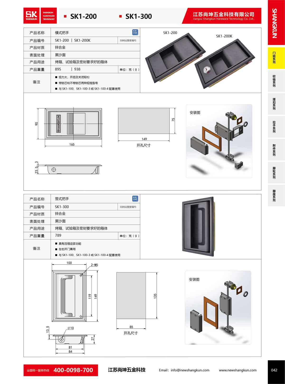 產(chǎn)品名稱:尚坤SK1-300工業(yè)鋅合金門鎖壓縮迫緊連桿隱藏豎式把手