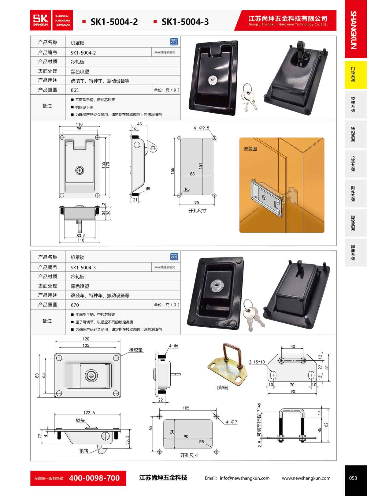 產品名稱:尚坤SK1-5004-2工業機械平面盒鎖清障車特種車振動設備面板鎖機罩鎖