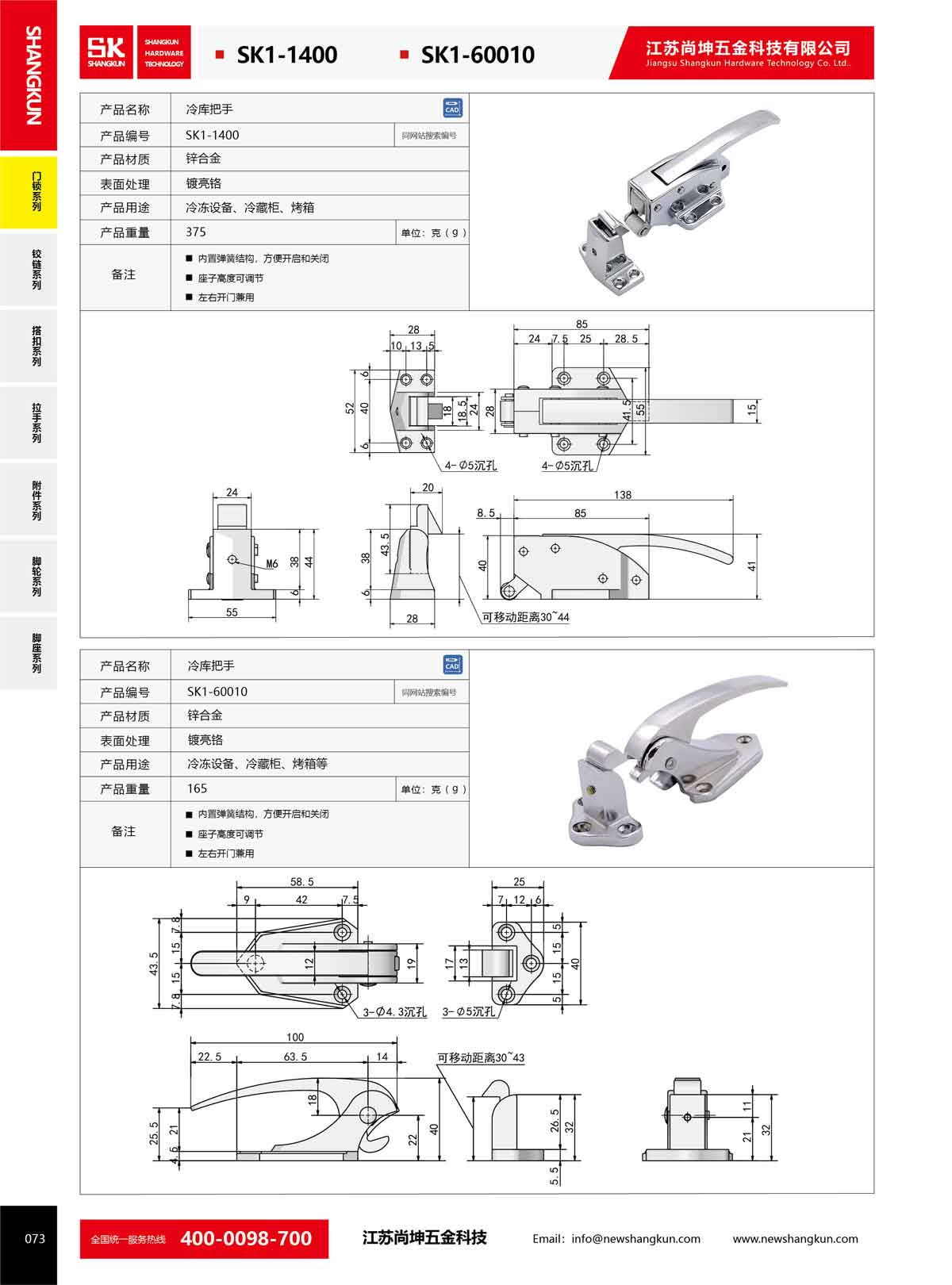 產品名稱:尚坤SK1-1400工業鋅合金機械門鎖冷庫冰柜烤箱密封把手執手