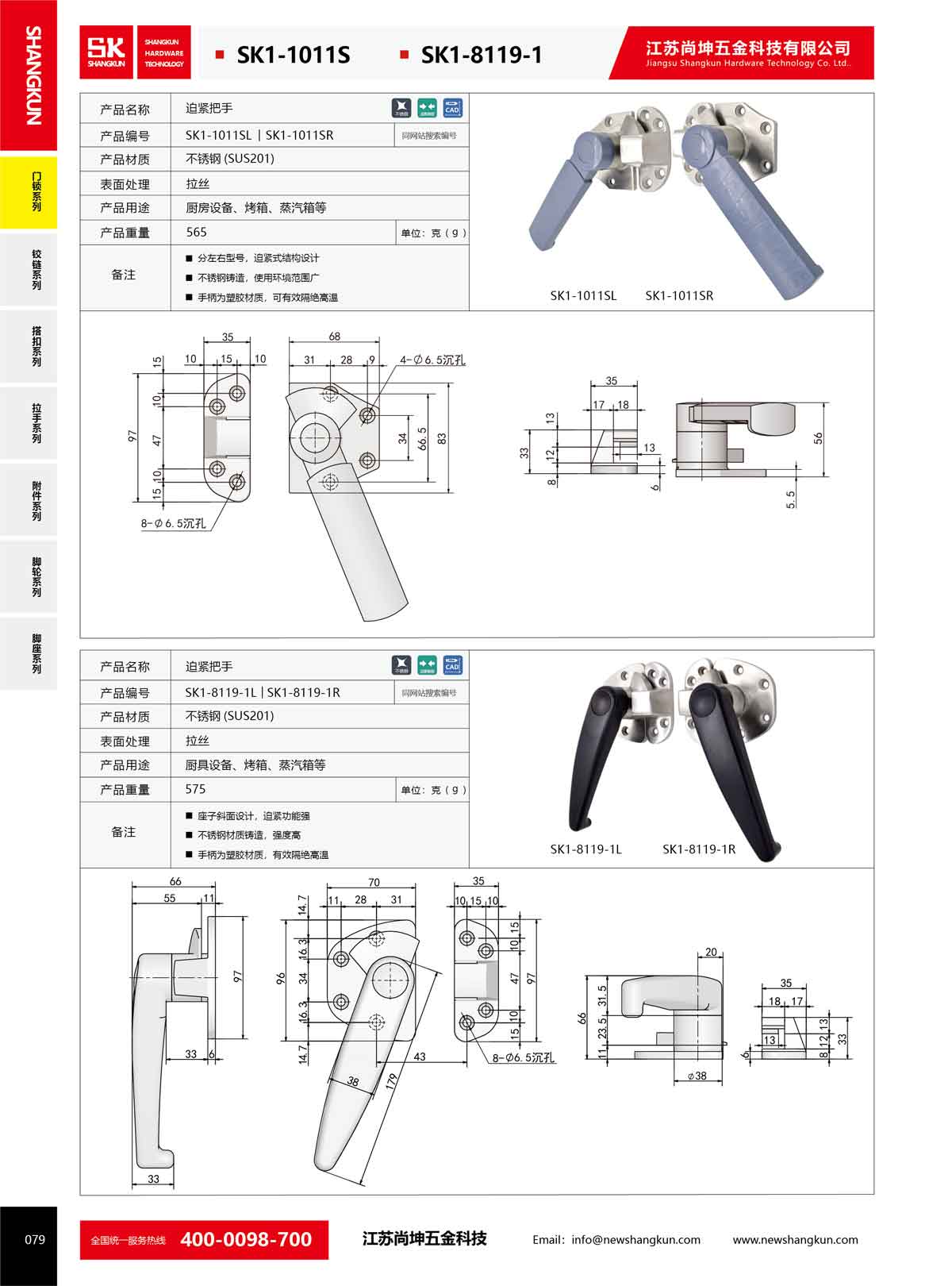 產(chǎn)品名稱:尚坤SK1-8119-1工業(yè)不銹鋼密封門鎖蒸箱烤箱旋轉(zhuǎn)滑入式斜面迫緊把手執(zhí)手