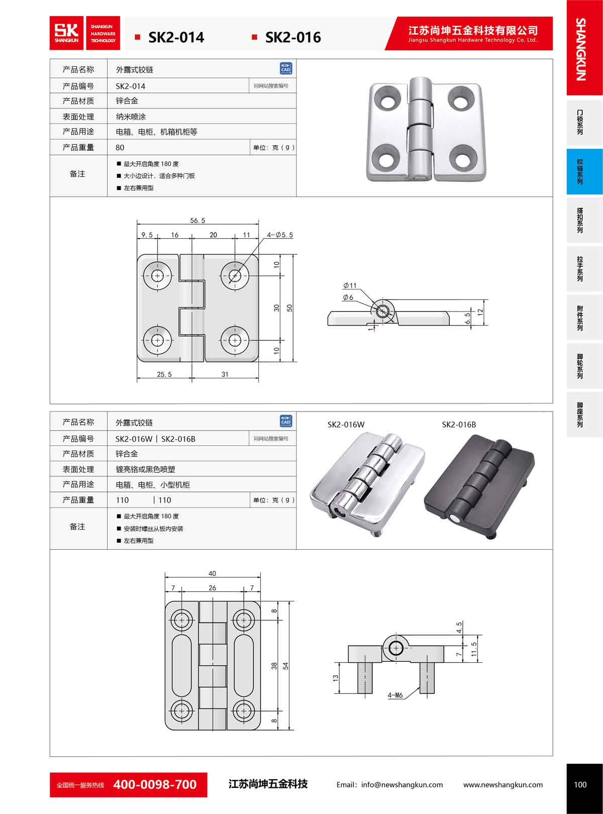 產(chǎn)品名稱:尚坤SK2-016工業(yè)鋅合金鉸鏈承重型180度平開加厚外露式合頁(yè)