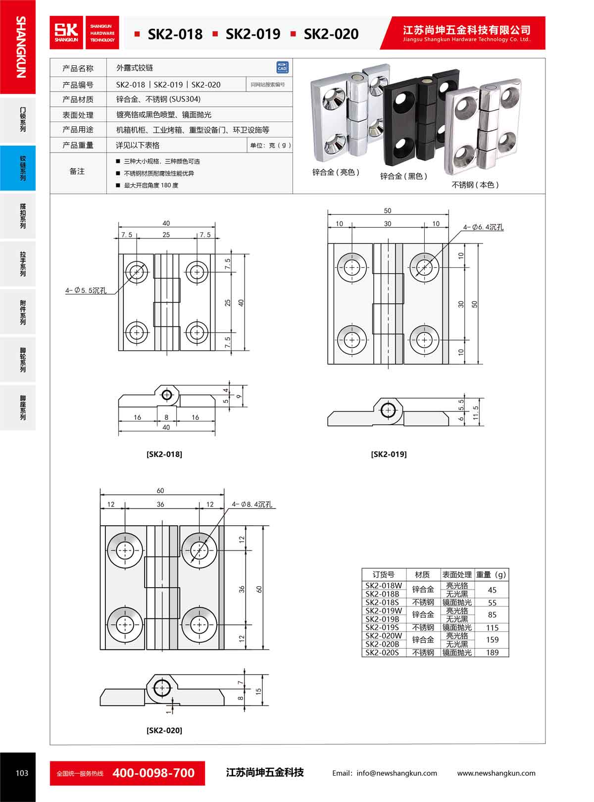 產品名稱:尚坤SK2-019工業不銹鋼鋅合金外露式鉸鏈重型加厚180度平開合頁