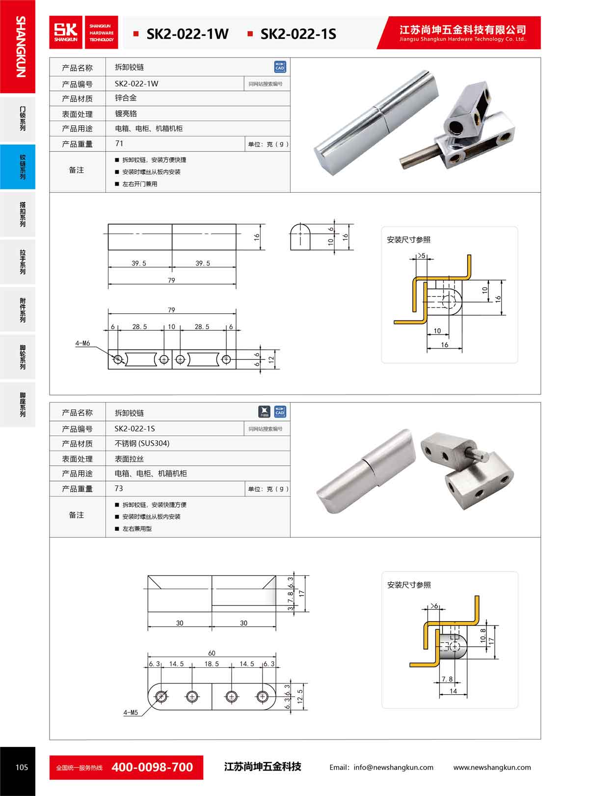 產品名稱:SK2-022-1W工業鋅合金同軸鉸鏈凸門轉角折頁可拆卸合頁