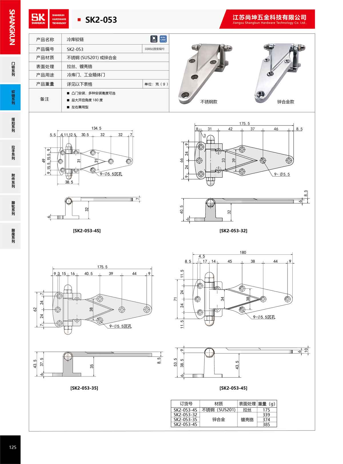 產(chǎn)品名稱(chēng):尚坤SK2-053-4S工業(yè)不銹鋼冷庫(kù)凸門(mén)鉸鏈烘箱烤箱櫥柜門(mén)合頁(yè)