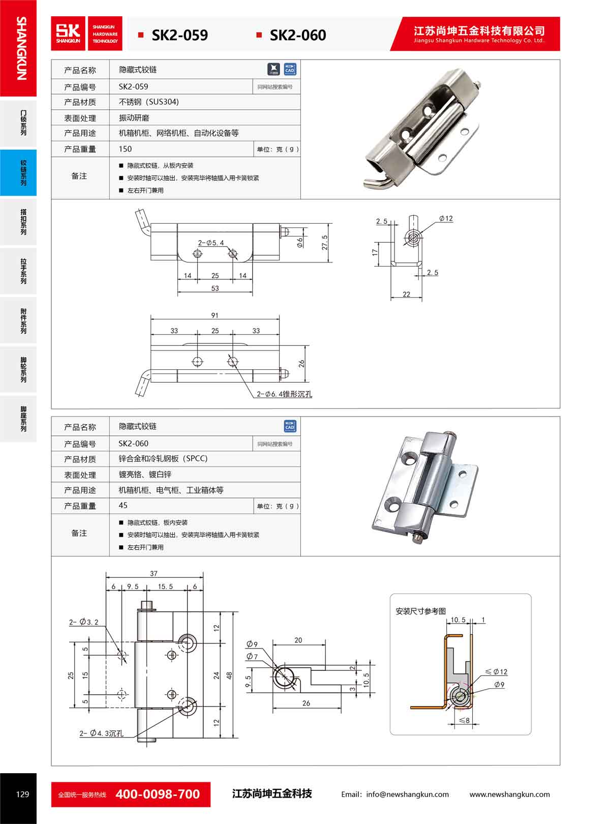 產品名稱:尚坤SK2-060工業鋅合金隱藏式鉸鏈機箱小機柜可拆卸隱形暗合頁