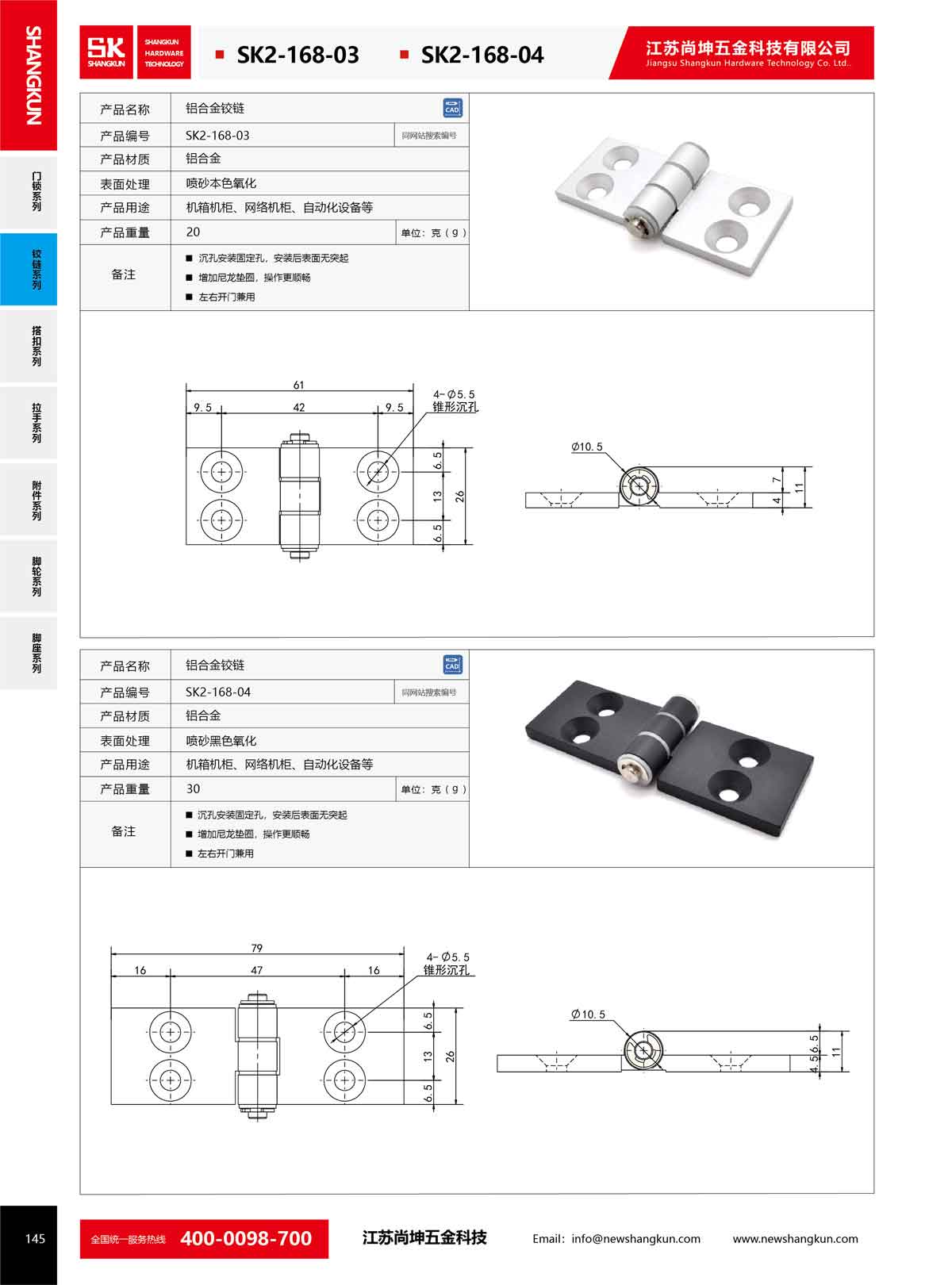 產品名稱:尚坤SK2-168-04工業五金鋁合金鉸鏈180度平開加厚折疊合頁