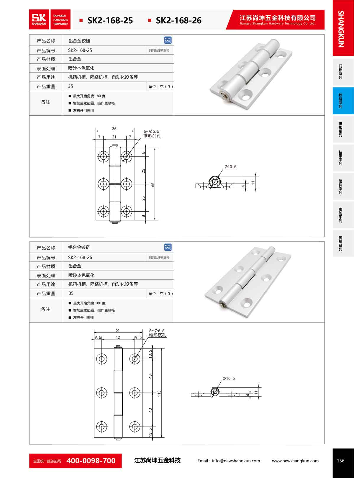產(chǎn)品名稱:尚坤SK2-168-25工業(yè)五金鋁合金鉸鏈180度平開加厚折疊合頁