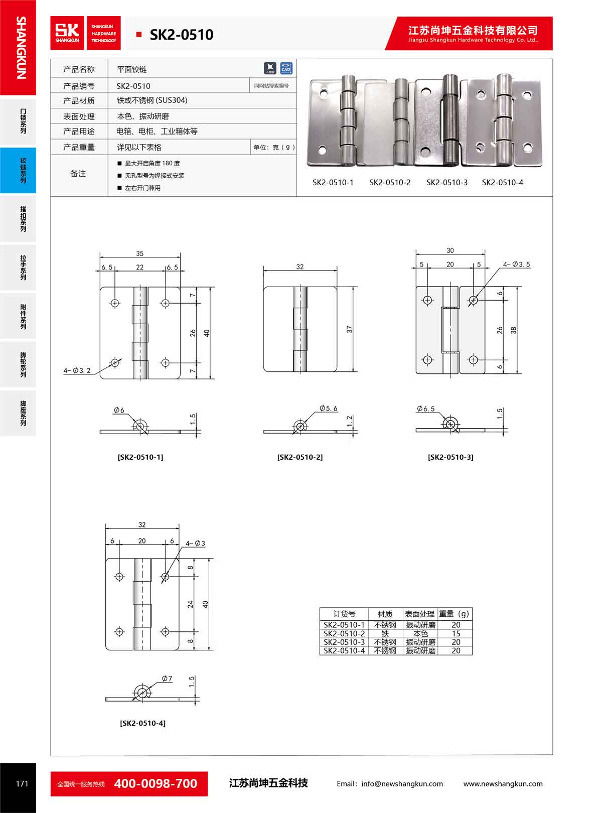 產(chǎn)品名稱:尚坤SK2-0510-1工業(yè)五金不銹鋼鉸鏈小柜門180度平開折疊合頁