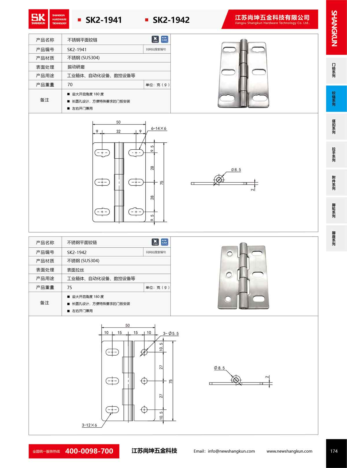 產(chǎn)品名稱:尚坤SK2-1941工業(yè)五金不銹鋼平面鉸鏈柜門180度平開折疊合頁(yè)