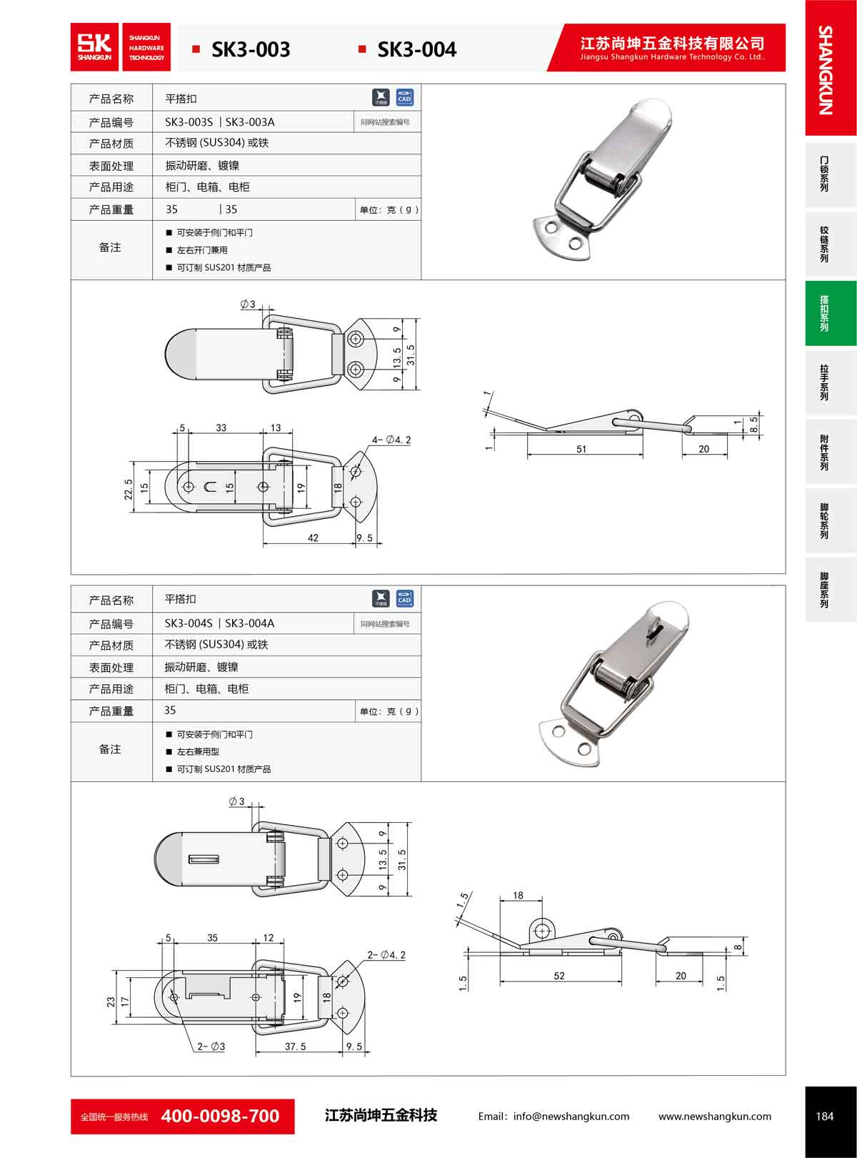 產品名稱:尚坤SK3-003工業五金不銹鋼彈簧搭扣柜門固定卡扣工具箱扣鎖扣鴨嘴扣