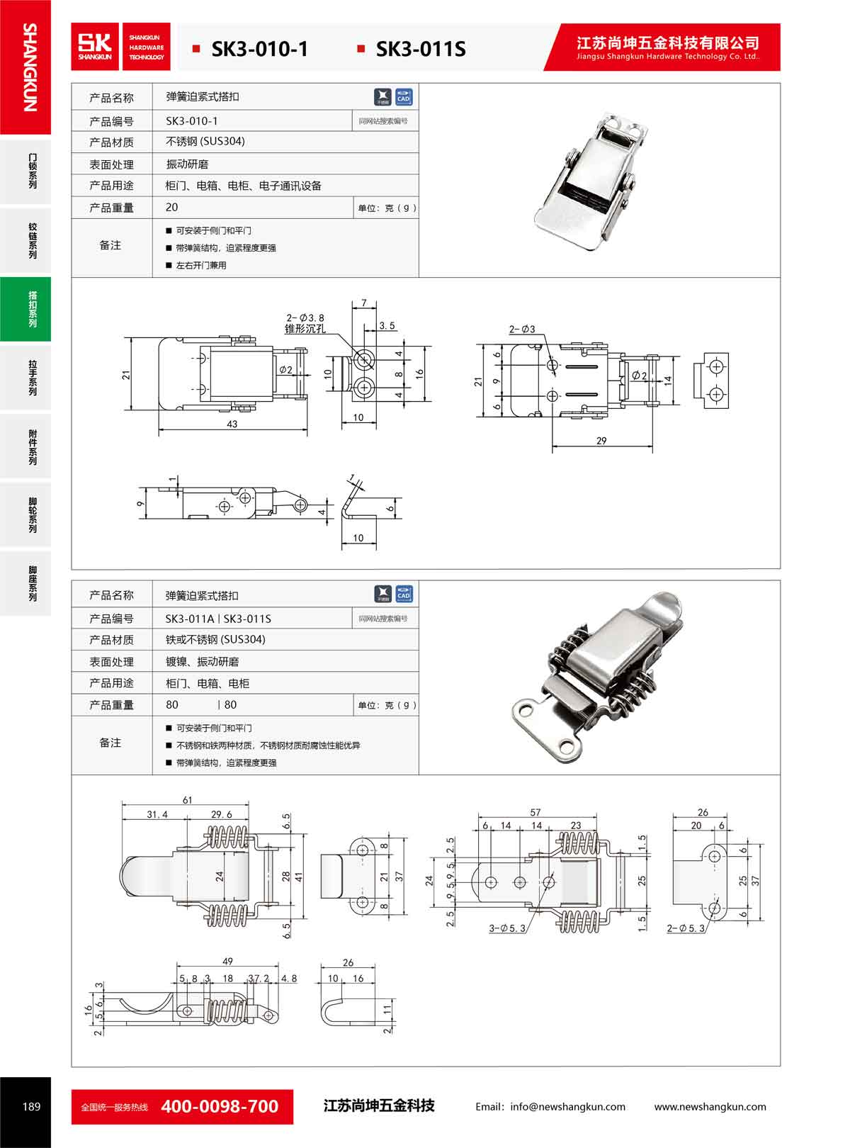 產(chǎn)品名稱:尚坤SK3-011S工業(yè)五金不銹鋼彈簧迫緊式搭扣柜門固定卡扣鎖扣工具箱扣鴨嘴扣