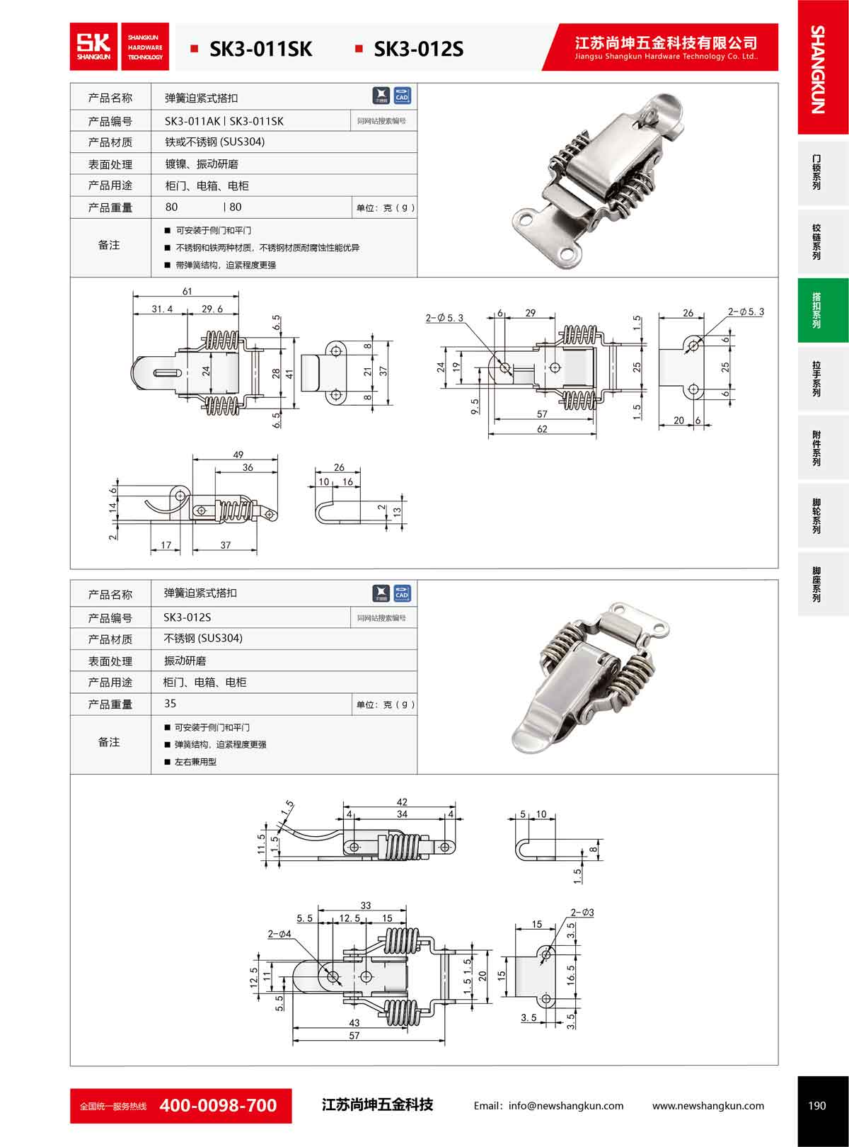 產(chǎn)品名稱(chēng):尚坤SK3-012S工業(yè)五金不銹鋼彈簧迫緊式搭扣柜門(mén)鎖扣固定卡扣工具箱扣鴨嘴扣