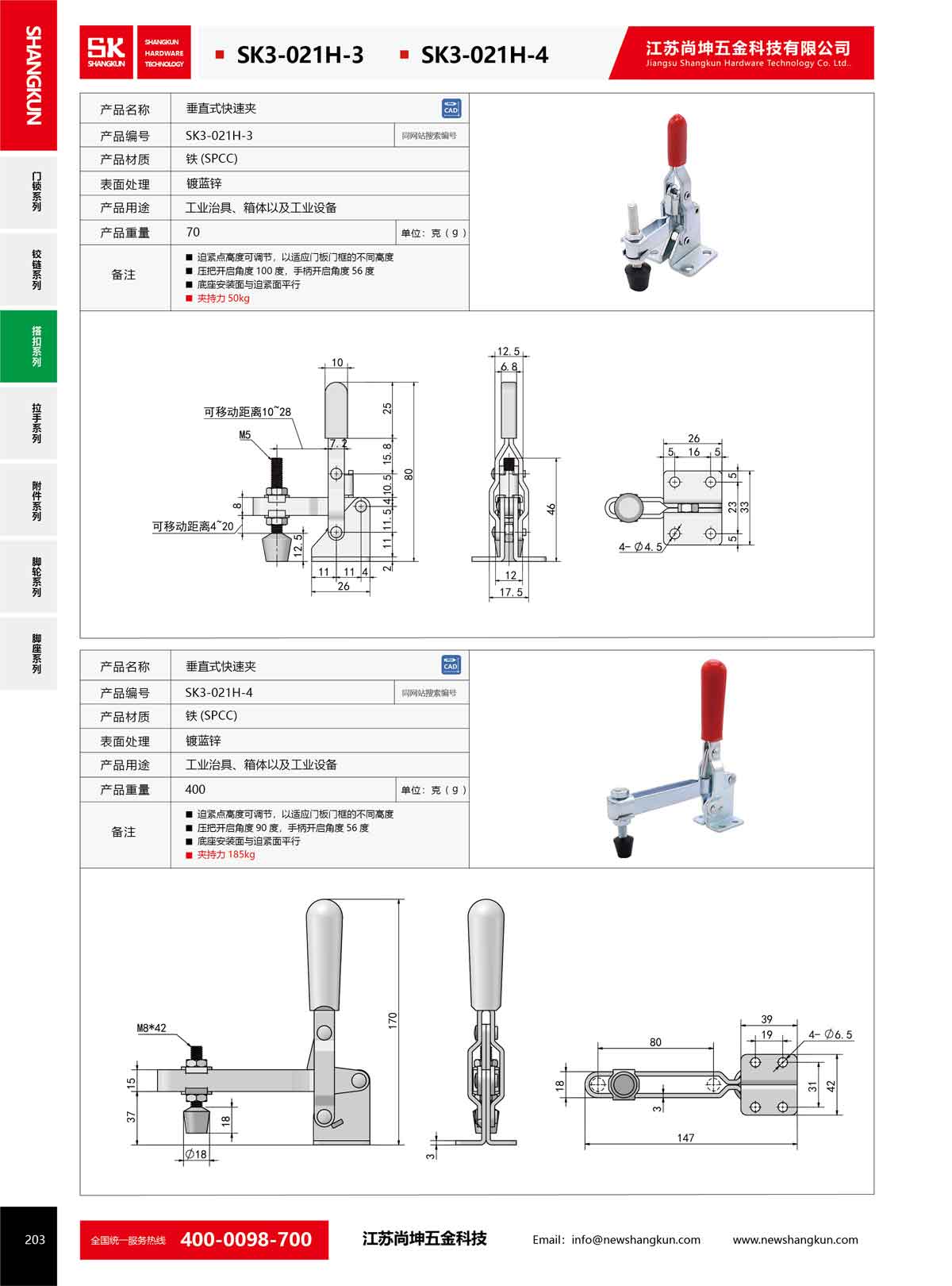 產(chǎn)品名稱:尚坤SK3-021H-3可調(diào)節(jié)迫緊工裝快速夾具垂直式夾鉗壓緊器固定夾