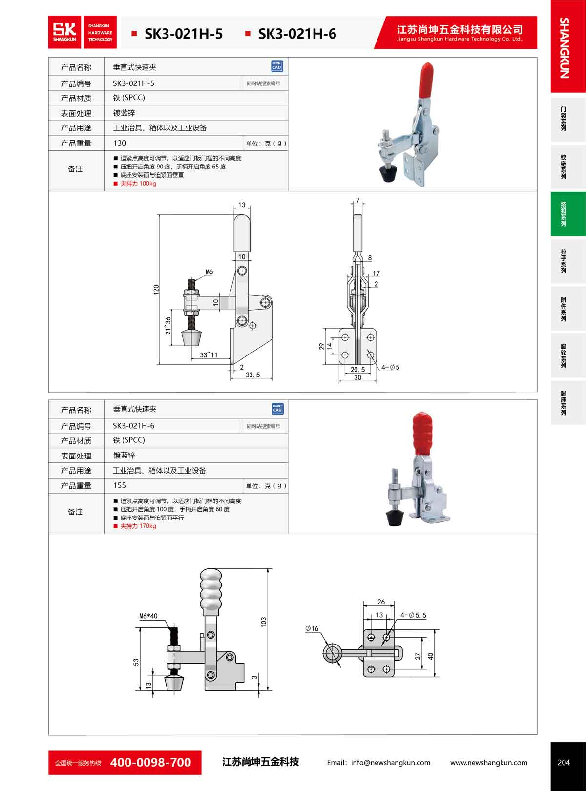 產(chǎn)品名稱:尚坤SK3-021H-6可調(diào)節(jié)迫緊工裝快速夾具垂直式夾鉗壓緊器固定夾