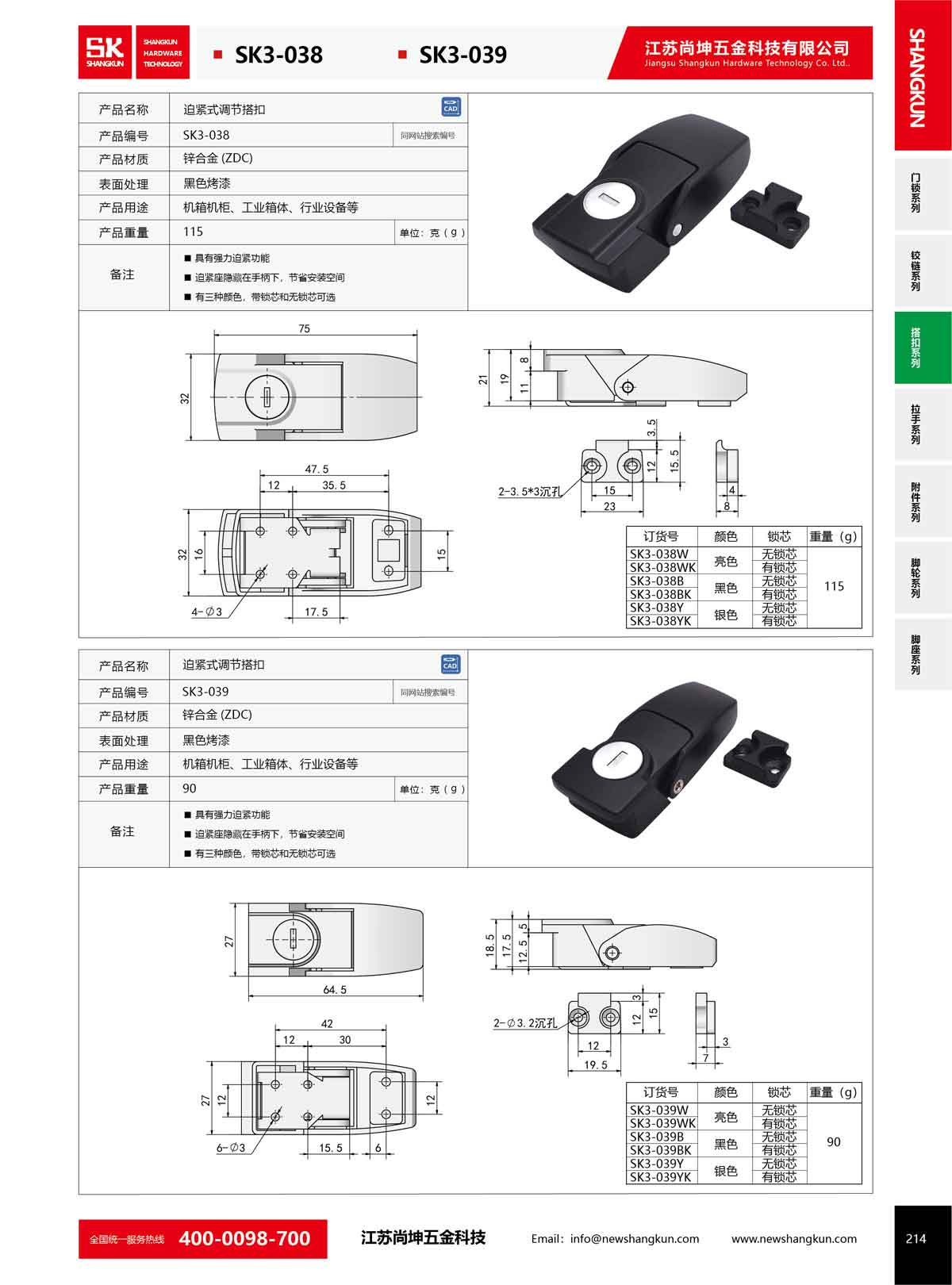 產品名稱:尚坤SK3-039工業鋅合金帶鎖迫緊搭扣工具箱扣鎖扣固定卡扣