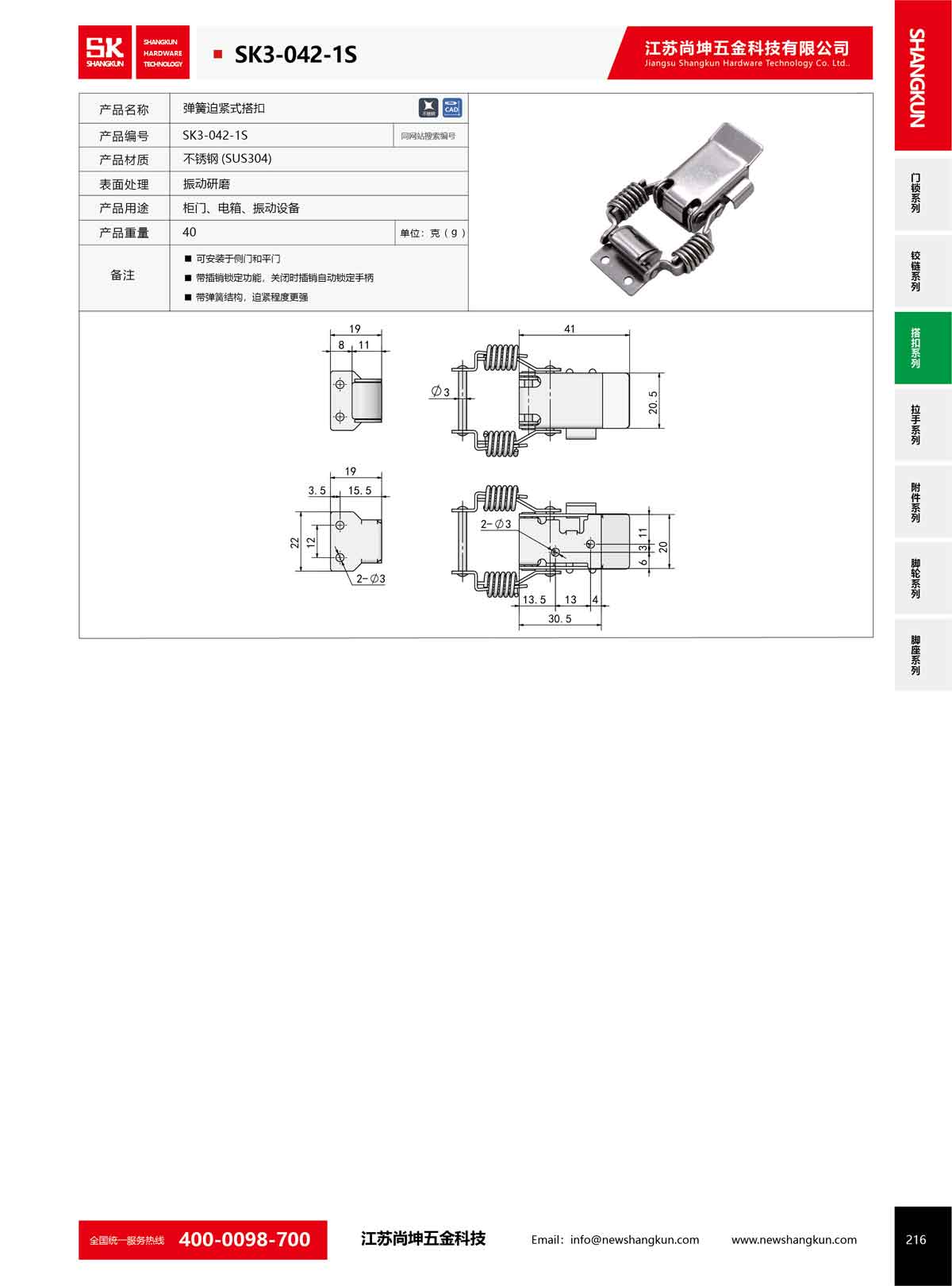 產品名稱:尚坤SK3-042不銹鋼自鎖型彈簧迫緊搭扣工具箱扣鎖扣固定卡扣鴨嘴扣