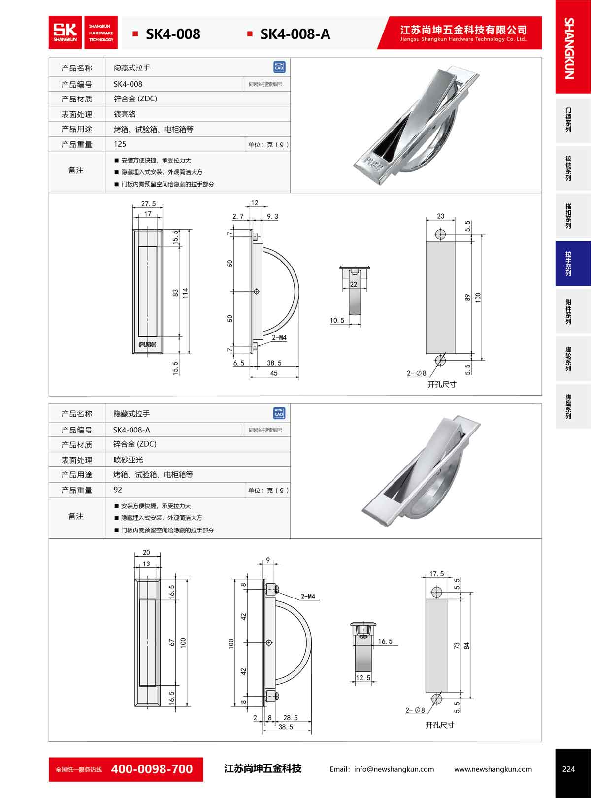 產品名稱:尚坤SK4-008工業五金嵌入隱藏式隱形柜門鋅合金暗拉手榻榻米把手提手