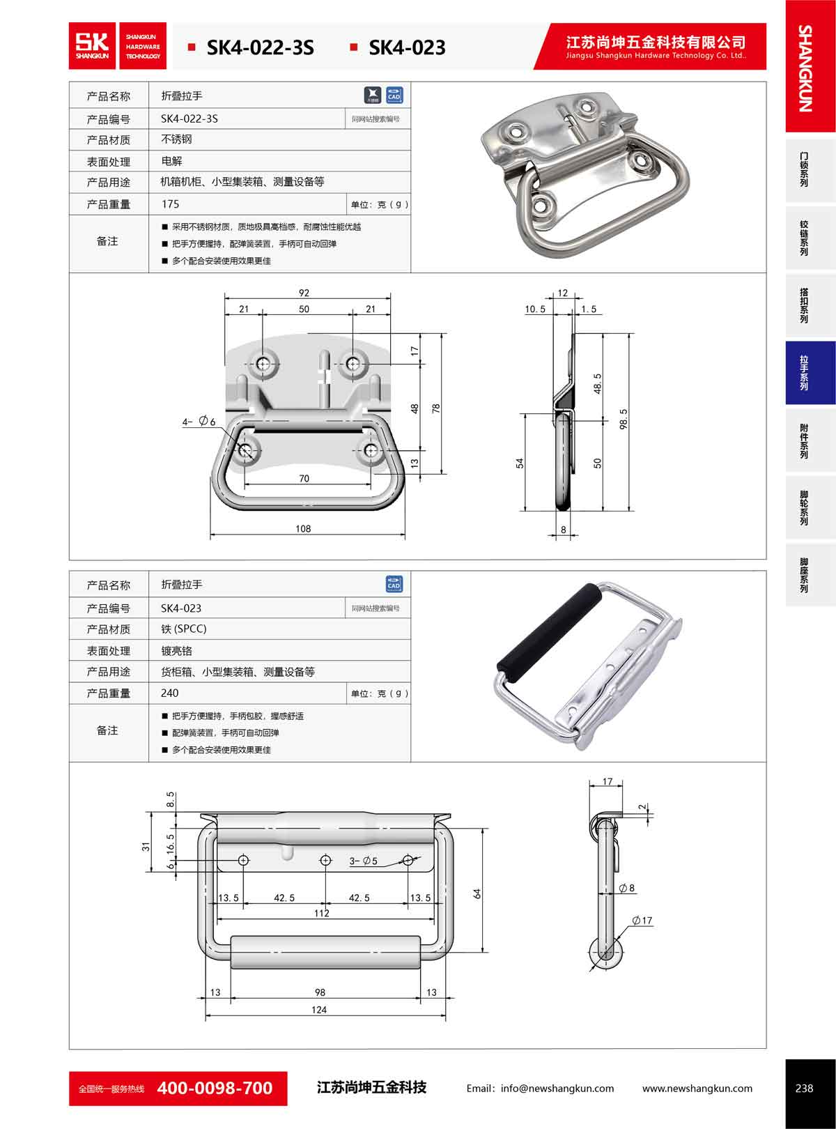 產品名稱:尚坤SK4-023工業不銹鋼柜門明裝彈簧折疊拉手拉環式門把手工具箱提手拉扣