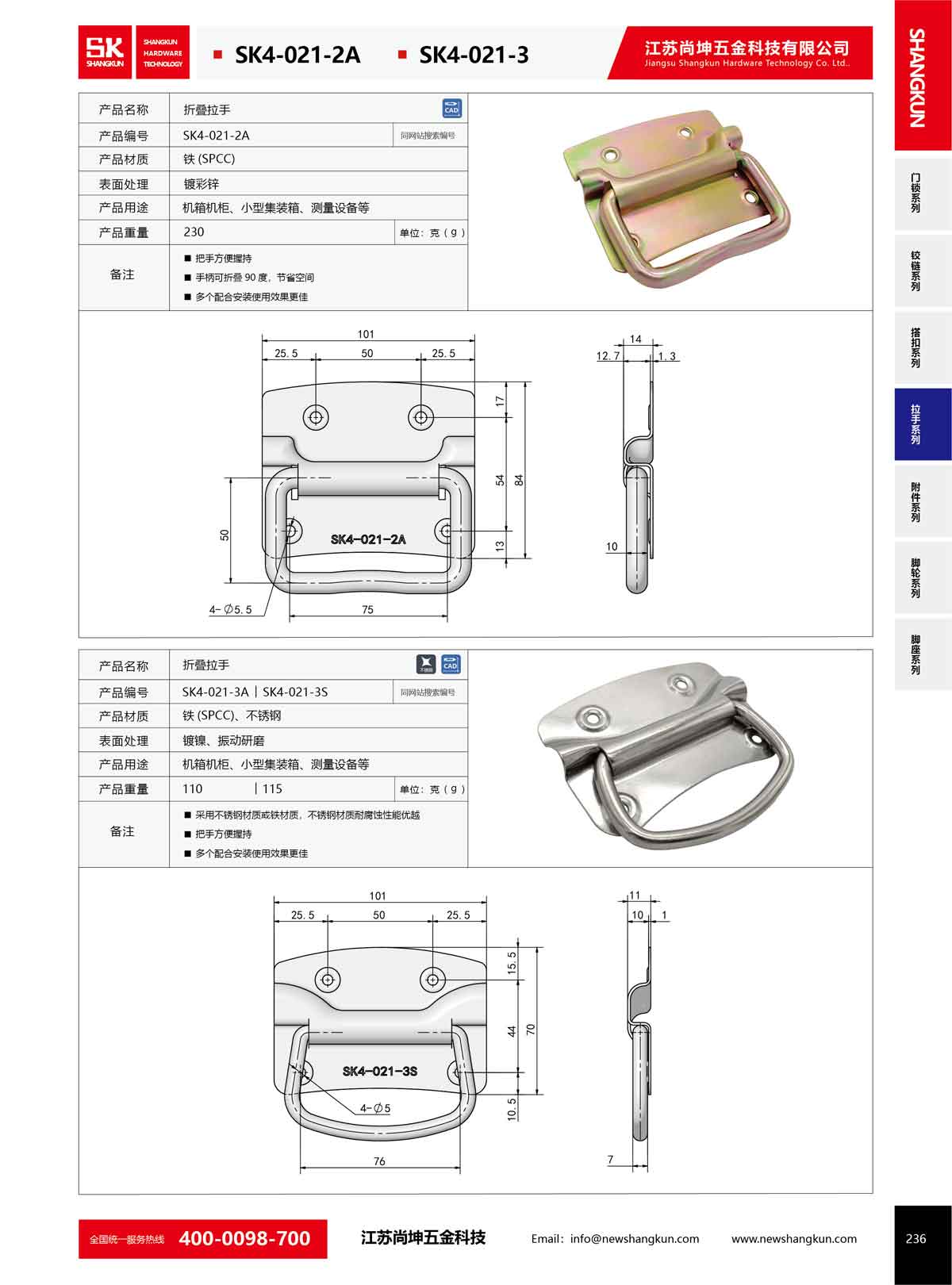產品名稱:尚坤SK4-021-3工業不銹鋼柜門明裝折疊拉手拉環式門把手工具箱提手拉扣