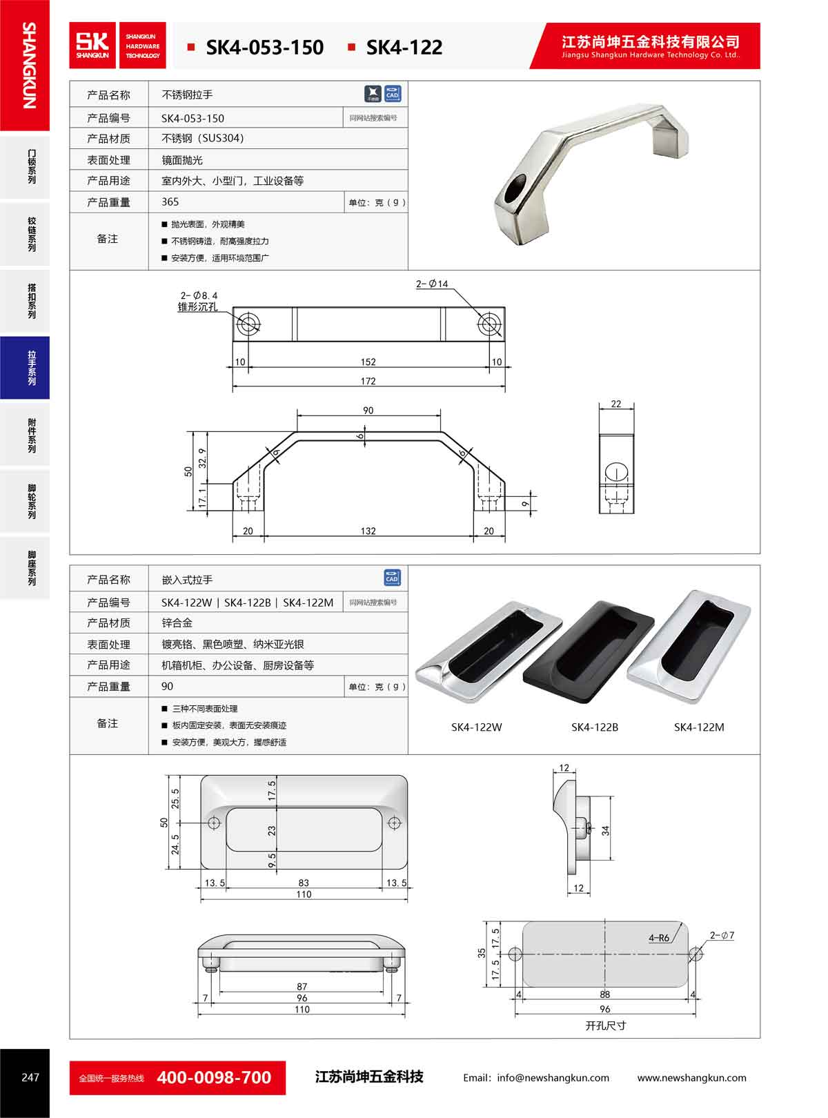產(chǎn)品名稱:尚坤SK4-053-150工業(yè)不銹鋼重型加厚方形拉手柜門(mén)把手手柄提手