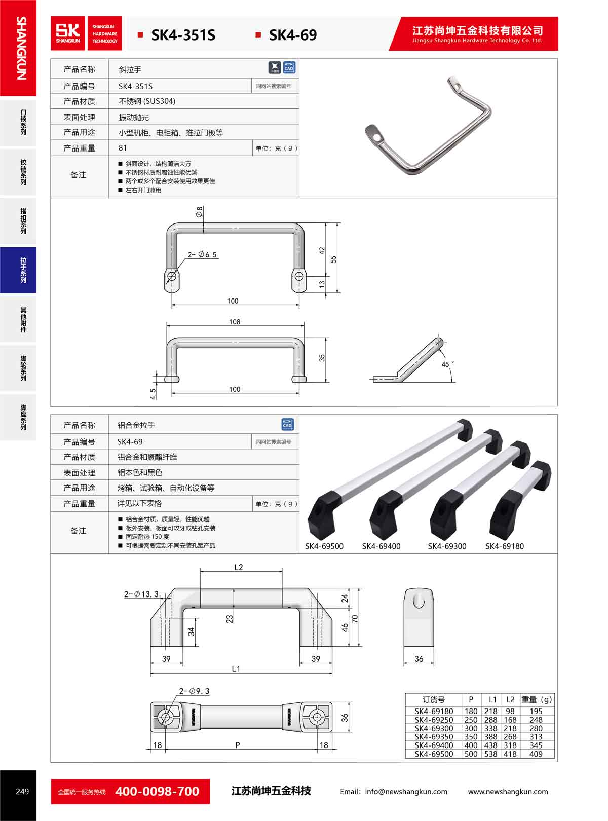 產(chǎn)品名稱:尚坤SK4-351S工業(yè)五金不銹鋼斜面小拉手明裝推拉門把手手柄提手