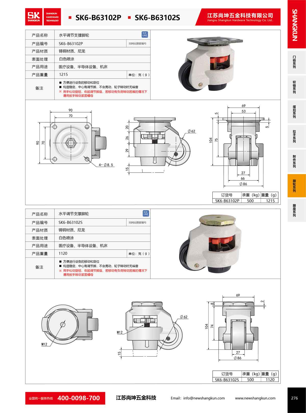 產(chǎn)品名稱:尚坤SK6-B63102S工業(yè)水平調(diào)節(jié)支撐腳輪重型萬(wàn)向輪轉(zhuǎn)向輪子福馬輪80S