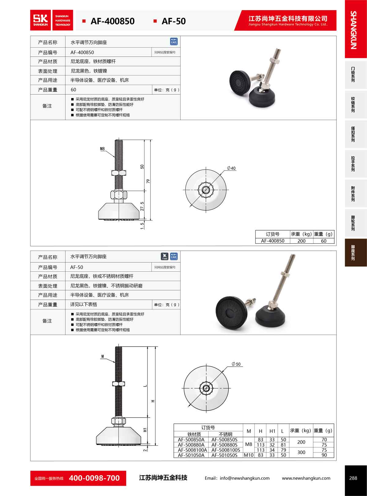 產品名稱:尚坤AF-50工業尼龍腳杯固定支撐調整地腳承重型水平調節萬向腳座腳墊M8 M10