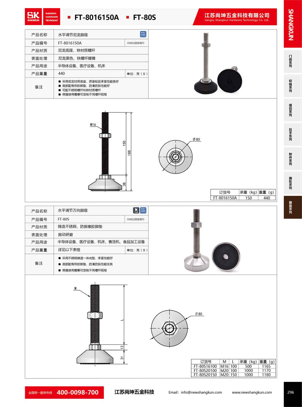產品名稱:尚坤FT-80S工業不銹鋼腳杯固定支撐調整地腳承重型水平調節萬向腳座腳墊M16M20