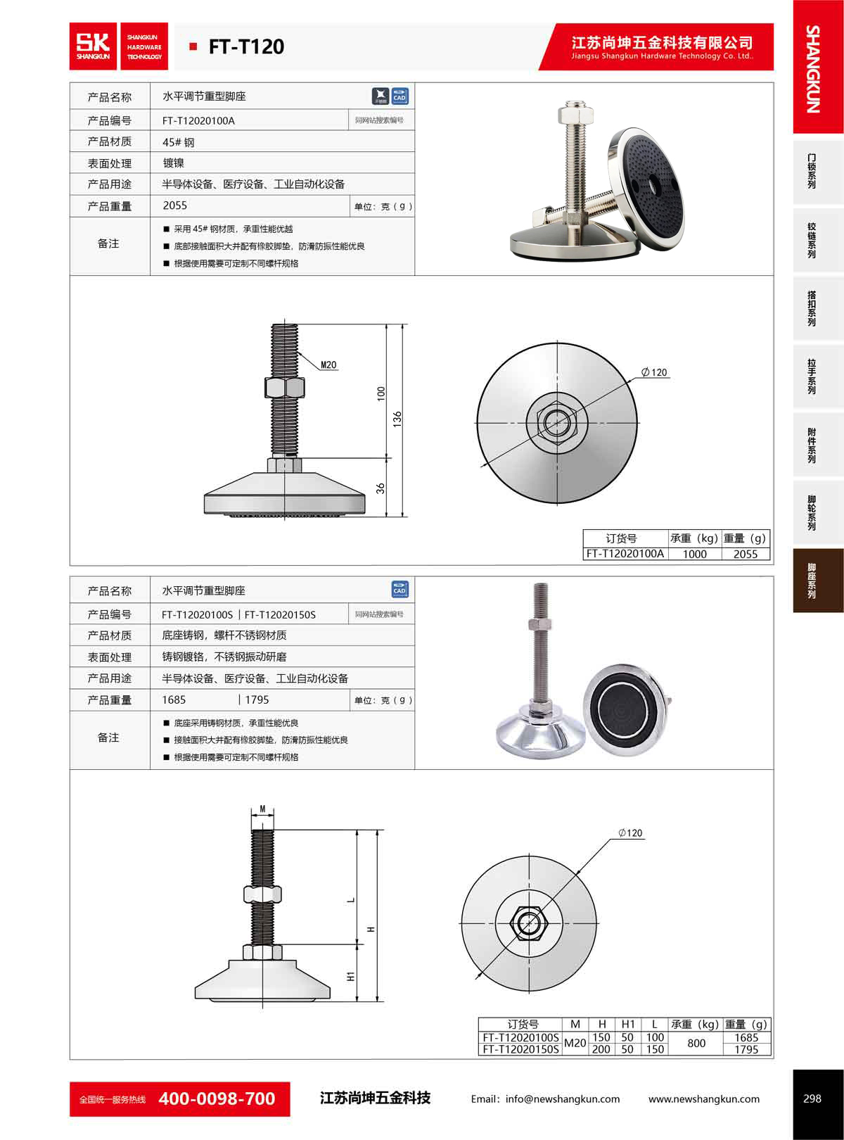 產品名稱:尚坤FT-T12020100A工業金屬腳杯固定支撐調整地腳承重型水平調節腳座腳墊M20