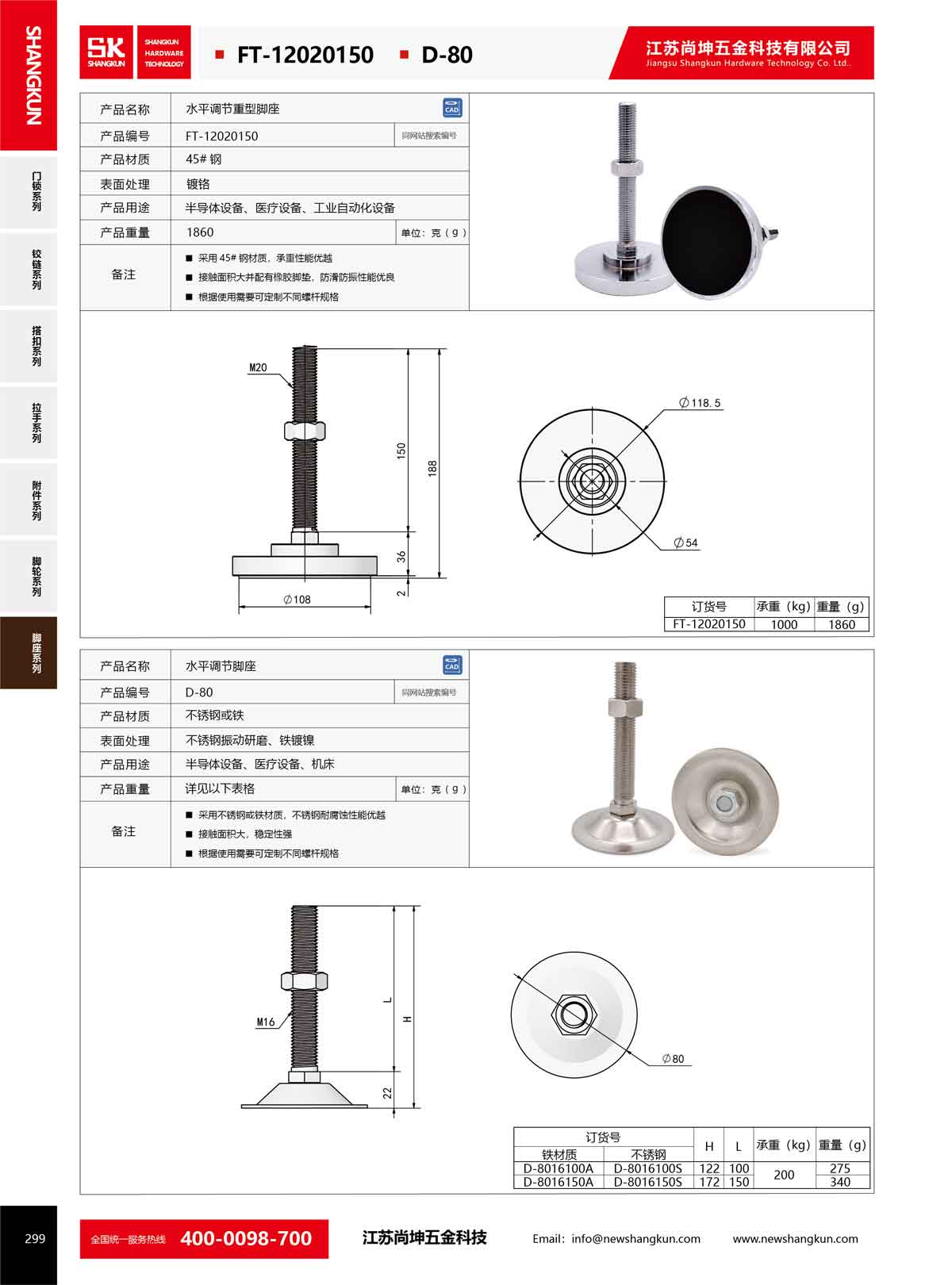 產品名稱:尚坤D-80工業不銹鋼腳杯固定支撐調整地腳承重型水平調節腳座腳墊M16